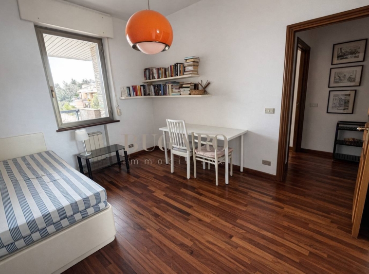 Nella zona notte sono disponibili un’ampia camera padronale con bagno en suite e terrazzino, una camera doppia, una camera singola, e altro bagno.
