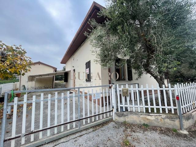 Rif. 1239 – Marzocca – Casa singola suddivisa in due nuclei abitativi; l’immobile principale di 212 mq. è disposto su due livelli ed è composto da piano terra con ingresso, cucina abitabile con camino, ampia sala, due camere matrimoniali e bagno; con scala a chiocciola si accede al piano superiore organizzato con soggiorno con angolo cottura, due camere matrimoniali e bagno.