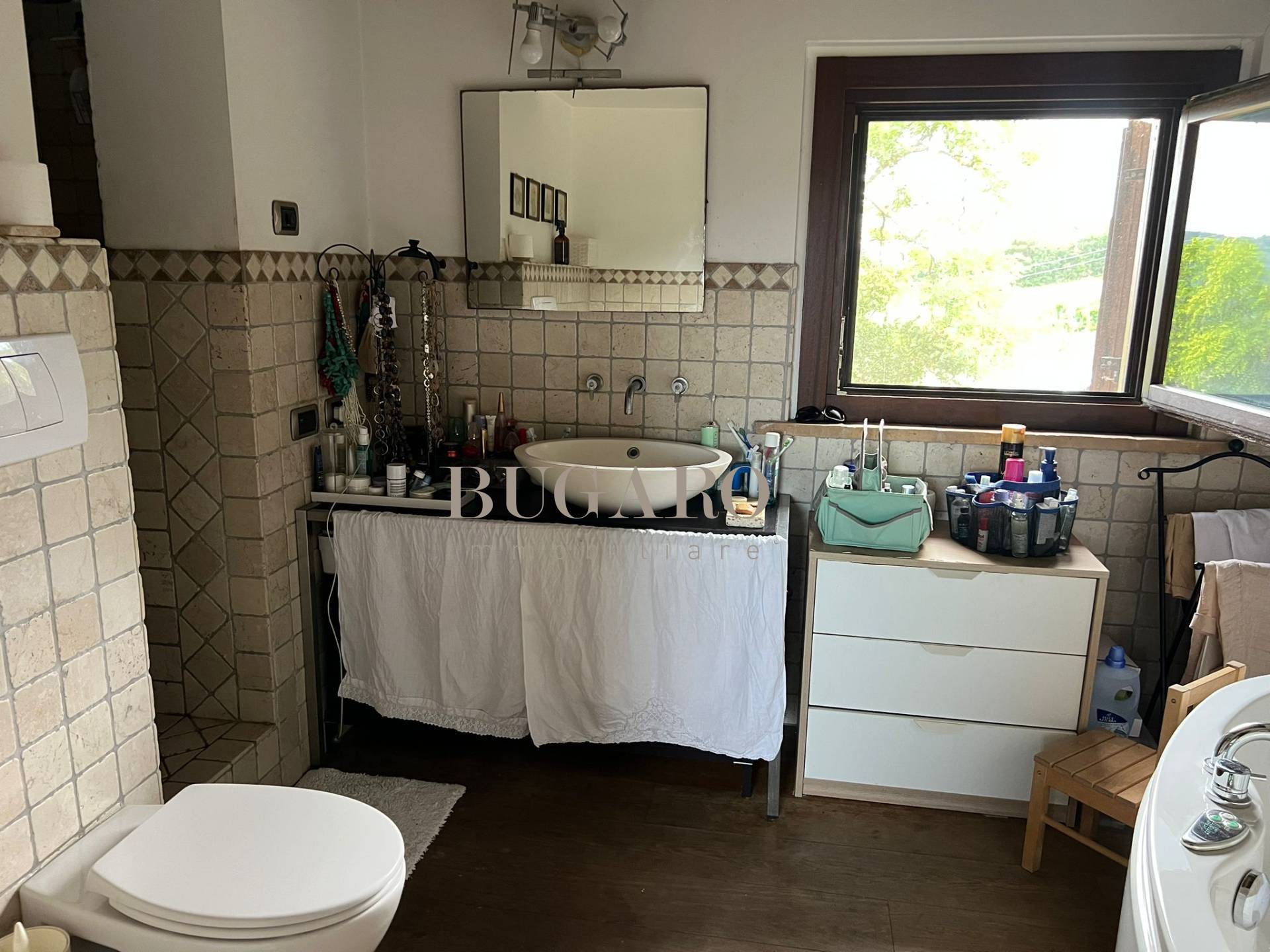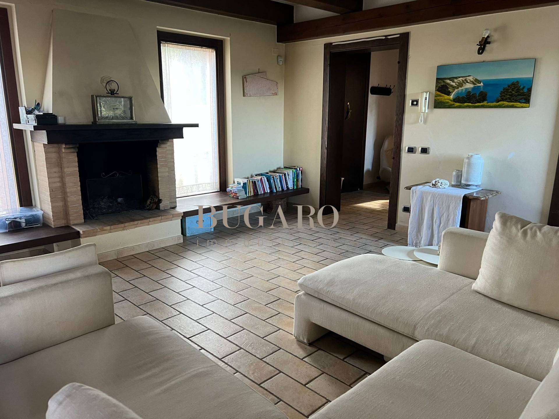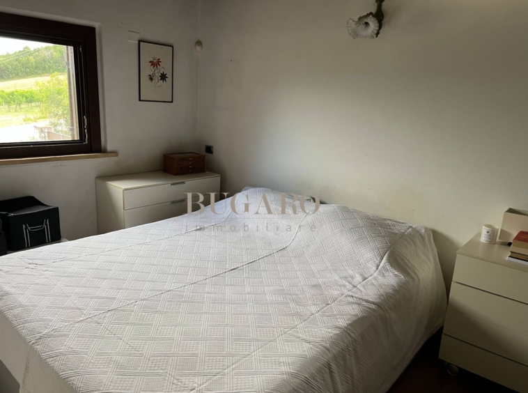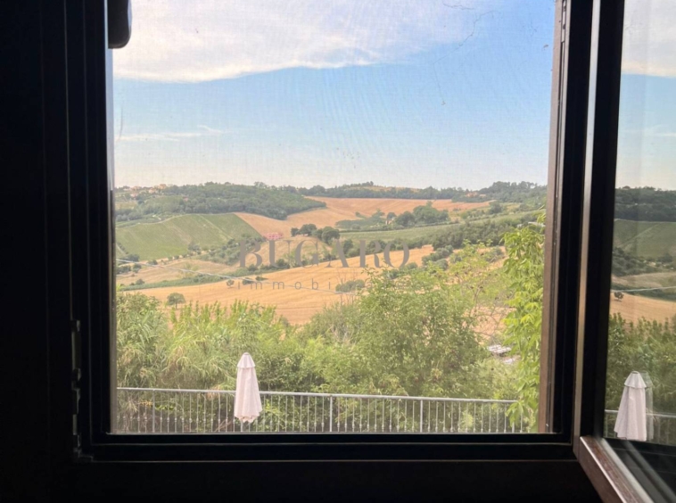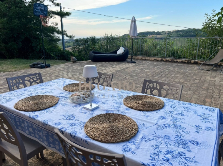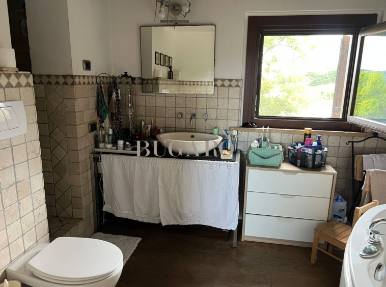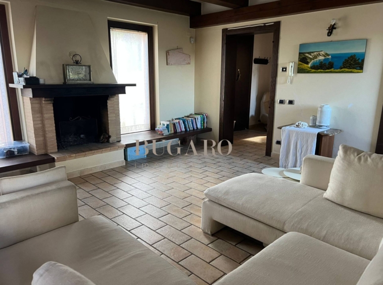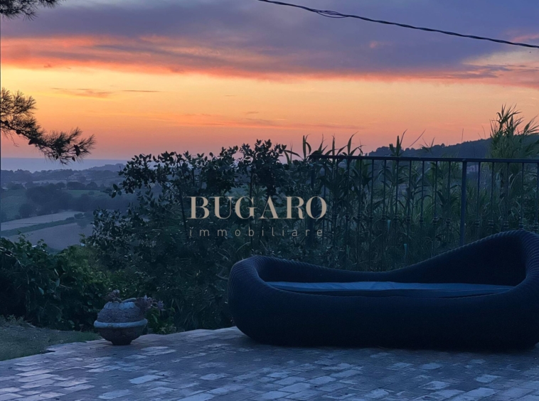 Rif. 1245 – Frazione Varano vicinanze Portonovo – Immersa fra le colline, nella splendida cornice del Monte Conero, disponiamo in vendita di villa singola di 220 mq. suddivisa su due livelli; con ingresso indipendente, da ampia corte privata, si accede al piano terra composto da suggestivo salone con camino, sala da pranzo con accesso a terrazza pavimentata con vista mare, golfo e Monte Conero, cucina abitabile, una camera matrimoniale e bagno per ospiti;