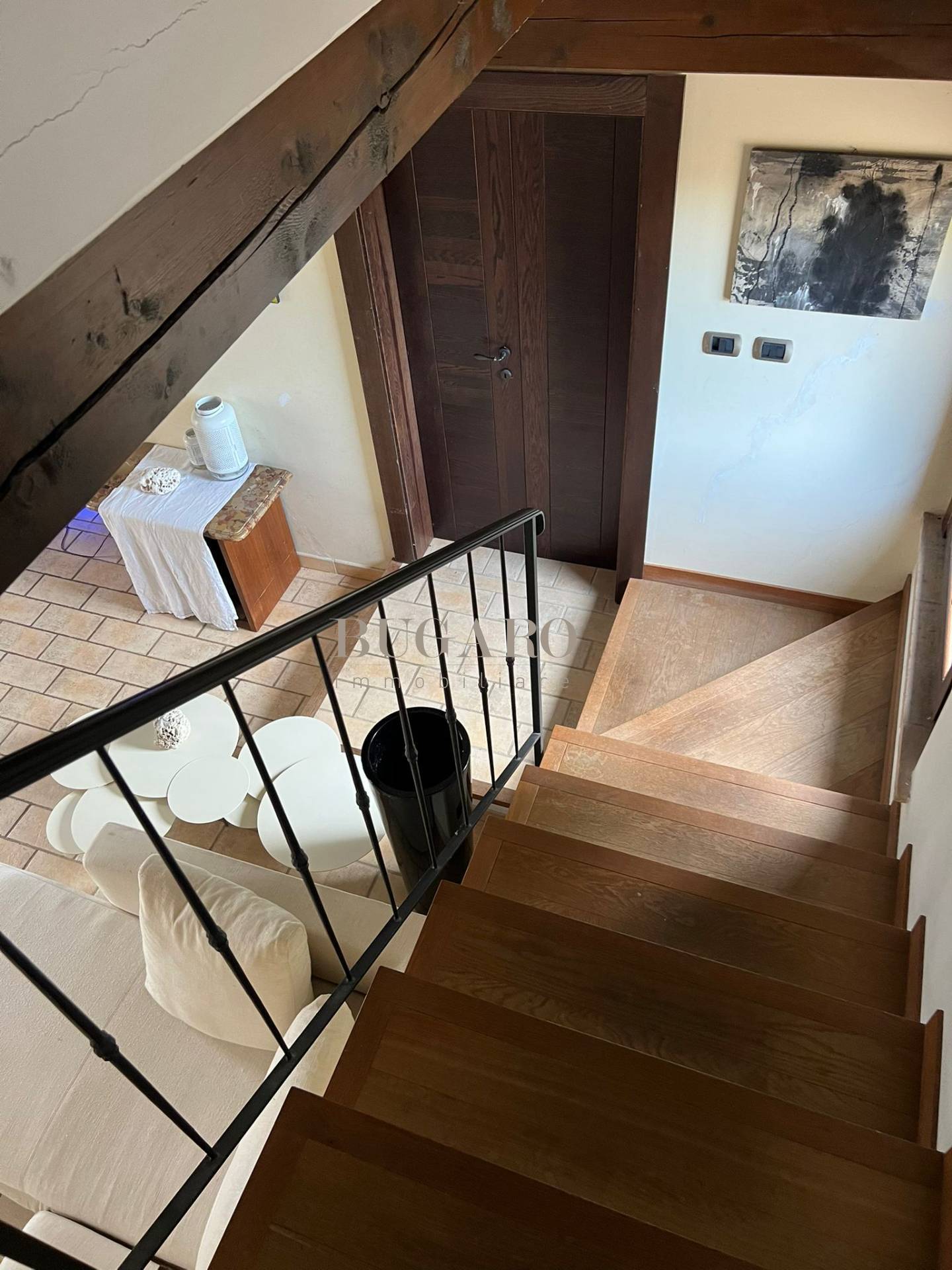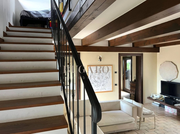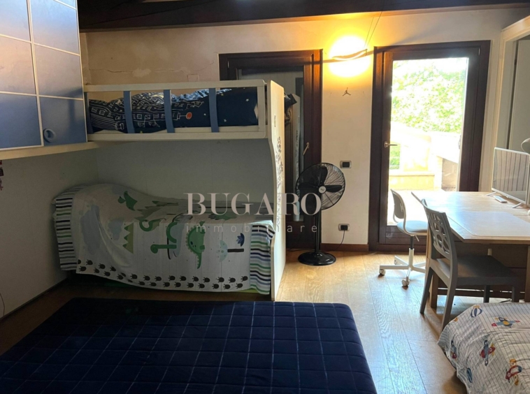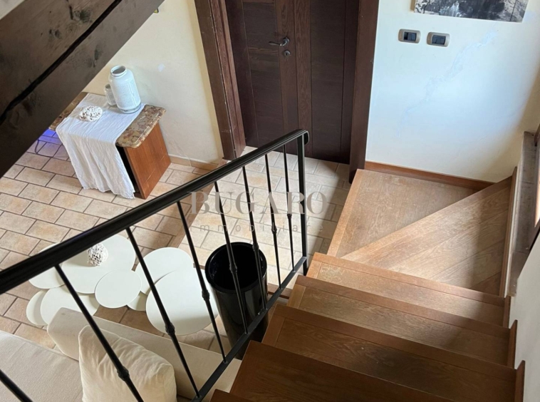 con comode scale interne si raggiunge la zona notte composta da camera padronale con cabina armadio e terrazza, una camera matrimoniale e bagno. Completano la proprietà una comoda zona lavanderia al piano seminterrato e un ampio garage doppio oltre ad un locale ripostiglio esterno finestrato con bagno.