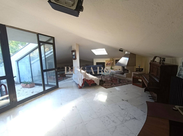 Con scala interna si accede ad un ampia stanza al piano mansardato con camino, bagno e terrazzino. Completa la proprietà un ampio garage di 70 mq.