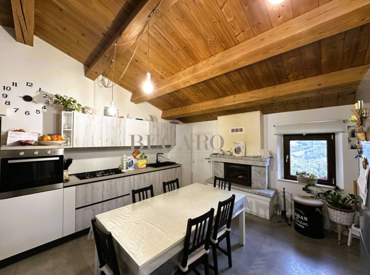 Tramite una comoda scala interna si accede al secondo piano, dove troviamo una seconda sala con cucina con camino, due camere da letto, due bagni ed un ulteriore locale con zona lavanderia.
